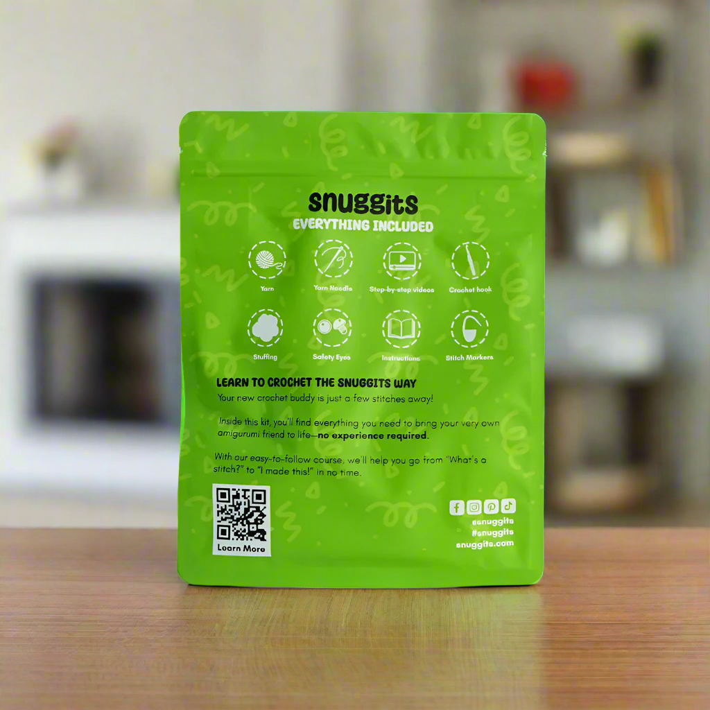 Each kit is packed with premium Snuggits Yarn, ergonomic crochet hooks, stitch markers, embroidery needles, stuffing, and more. Plus, you'll get exclusive access to step-by-step video tutorials and downloadable PDF patterns—making it easier than ever to master the art of crochet.